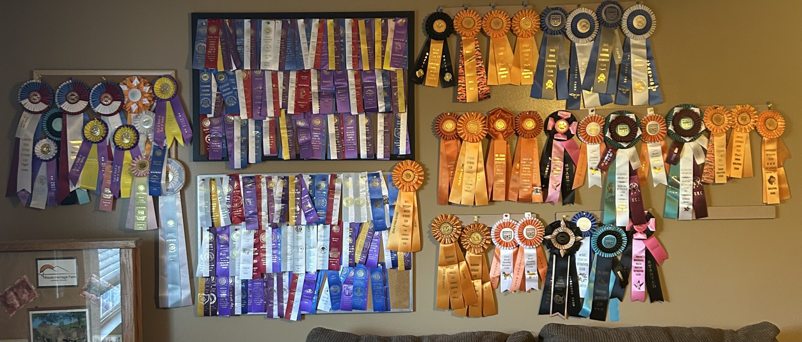 Welcome to Sky Pond Chesapeakes! We raise Chesapeake Bay Retrievers from show quality dogs that have the instinct and drive to be superb hunting / hunt test dogs. The ribbons in the picture below attest to our successes. To quote our friend, James Layne, “Life is too short to hunt with an ugly dog”.