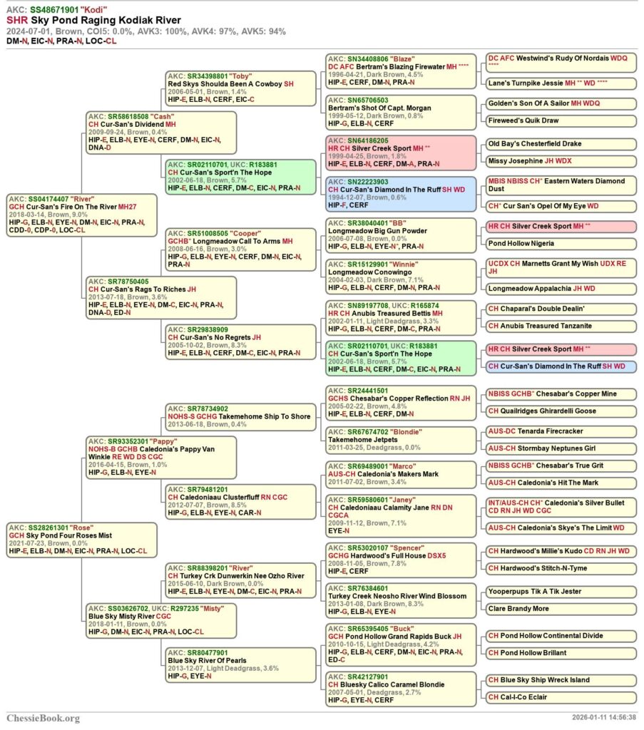 Kodi is co-owned by John Contini of Sky Pond Chesapeakes and Mike Hough of Harrodsburg, KY.