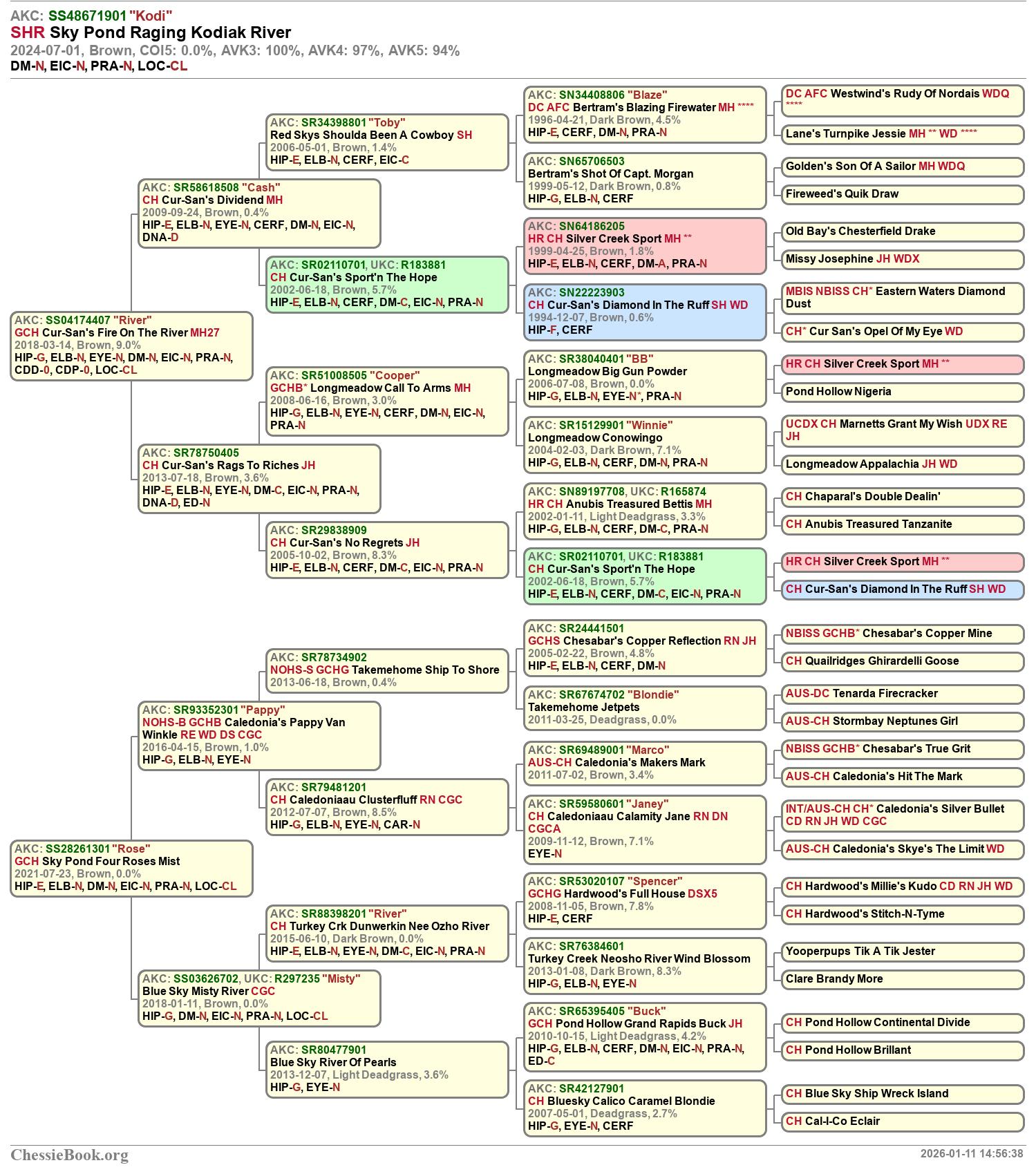Sire: GCH Cur-San’s Fire On The River MH27