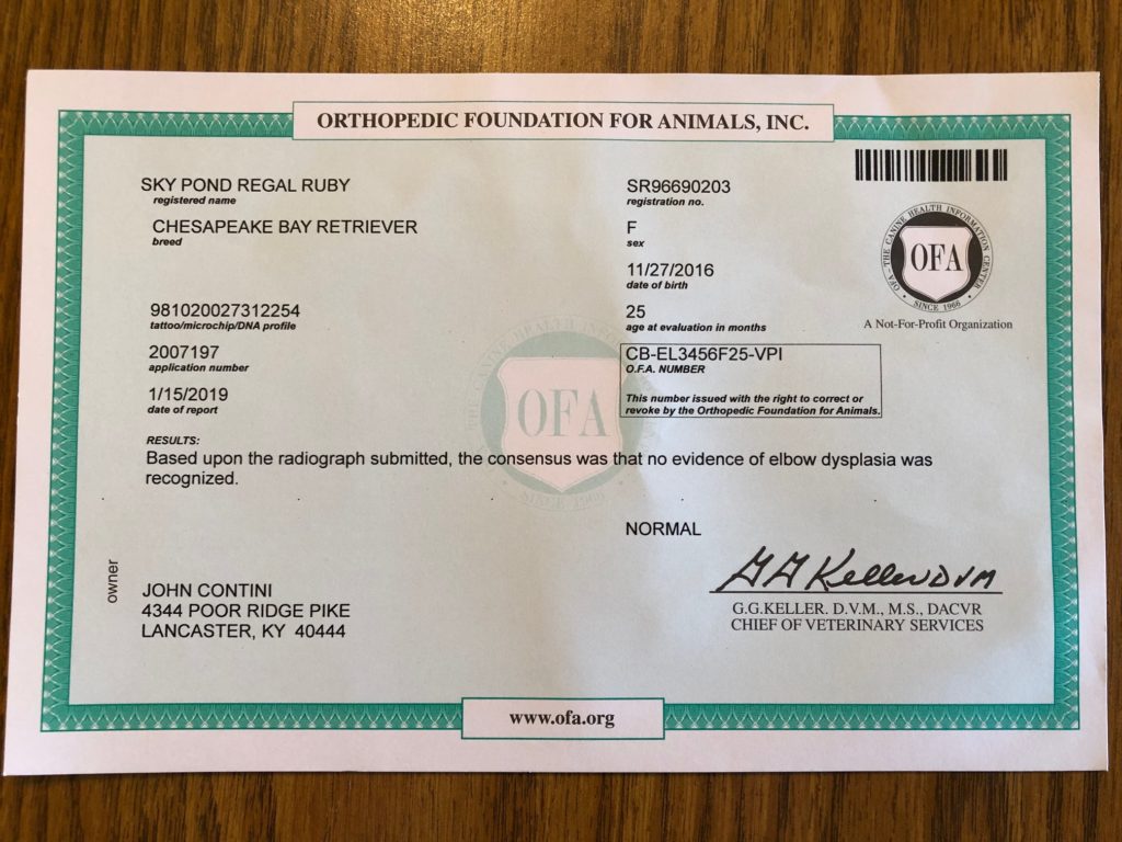 Ruby OFA Elbow Certificate Full size 2016 × 1512 pixels Ruby – Health Certs Ruby – OFA Elbow Certificate Previous image Next image Leave a Reply Cancel replyYour email address will not be published. Required fields are marked *CommentName* Email* Website Save my name, email, and site URL in my browser for next time I post a comment. Δ This site uses Akismet to reduce spam. Learn how your comment data is processed.